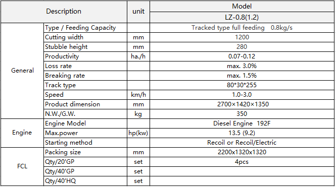 The mini track riding type self-propelled combine harvester is specially suitable for hills and narrow area with its special structure and stable quality. The machine is operated easily and its working efficiency is high.